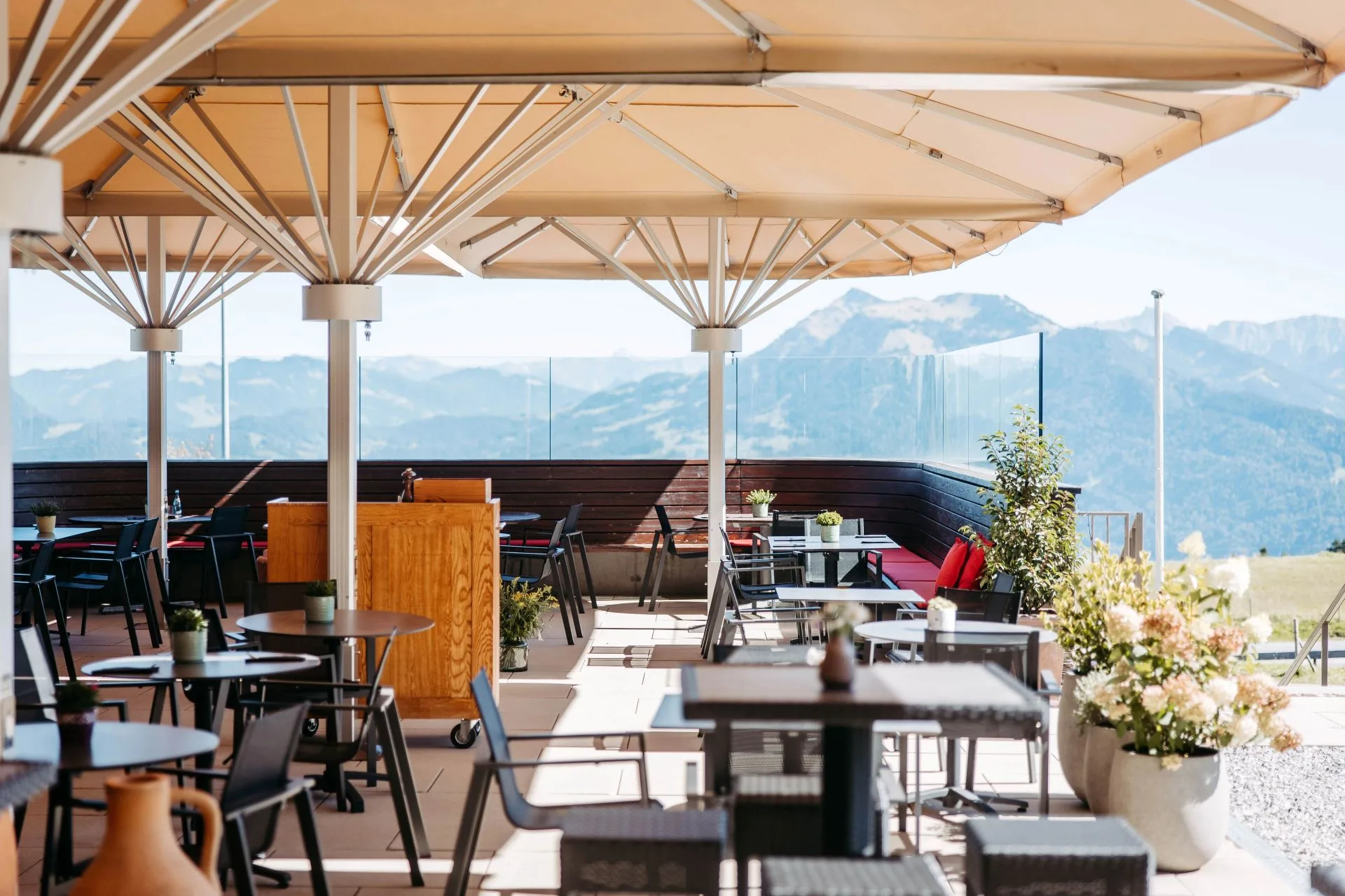 Mit freiem Blick über den Bregenzerwald und die Berge.